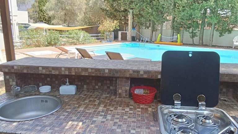 Die Villa umfasst fünf Schlafzimmer, ein Wohnzimmer und drei Badezimmer. Zu den Annehmlichkeiten der Zimmer zählen Klimaanlage, kostenloses WLAN sowie Handtücher und Bettwäsche. Die Küche verfügt über einen Kühlschrank und eine Kaffeemaschine. Aufenthaltsräume sind geräumig und bieten Komfort für Familien oder Gruppen.