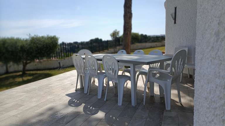 Die klimatisierte Villa verfügt über sieben geräumige Schlafzimmer, ein gemütliches Wohnzimmer und eine voll ausgestattete Küche mit Kühlschrank und Kaffeemaschine. Die sechs Badezimmer sind mit einem Bidet und einer Dusche ausgestattet. Zusätzlich gibt es einen Sitzbereich, eine Waschmaschine und einen Haartrockner. Genießen Sie den atemberaubenden Meerblick von der Terrasse und nutzen Sie den Grillplatz für gesellige Abende.