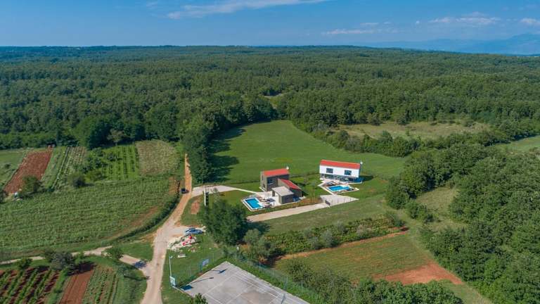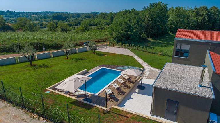 Die Villa Terra befindet sich in Petehi, einer ruhigen Gegend, die etwa 31 km vom Amphitheater Pula und 35 km von der Kathedrale St. Eufemia Rovinj entfernt liegt. Die Burg Morosini-Grimani ist nur 11 km entfernt. In der Nähe der Villa finden Sie auch die Burg Dvigrad, die 20 km entfernt liegt, und die Burg Pazin, die nach 27 km erreicht werden kann. Der Flughafen Pula ist ca. 30 km von der Villa entfernt.
