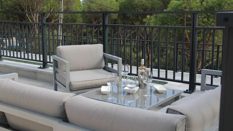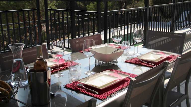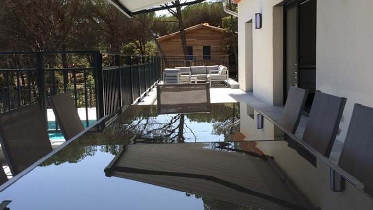 Die Villa Terre des Maures liegt in Vidauban, nur 38 km vom Bahnhof Saint-Raphaël Valescure und 20 km vom Golfclub Saint-Endréol entfernt. Die Lage bietet eine ruhige Umgebung und ist ideal für Ausflüge in die Natur. In der Nähe befinden sich auch der Golfplatz Sainte-Maxime (30 km) und der Golfplatz Beauvallon (33 km). Der nächstgelegene Flughafen, Toulon-Hyères, ist nur 68 km entfernt.