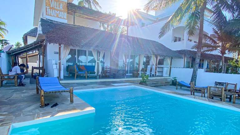 Entspannen Sie am Pool und genießen Sie die Aussicht auf das Meer. Die Villa Thamani Zanzibar bietet auch einen eigenen Strandbereich, wo Sie die Sonne und den Sand genießen können. Bei schönem Wetter können Sie den Garten nutzen und sich im Solarium entspannen. Das freundliche Personal an der Rezeption steht Ihnen jederzeit zur Verfügung und gibt Ihnen gerne Tipps für Aktivitäten und Ausflüge in der Umgebung.