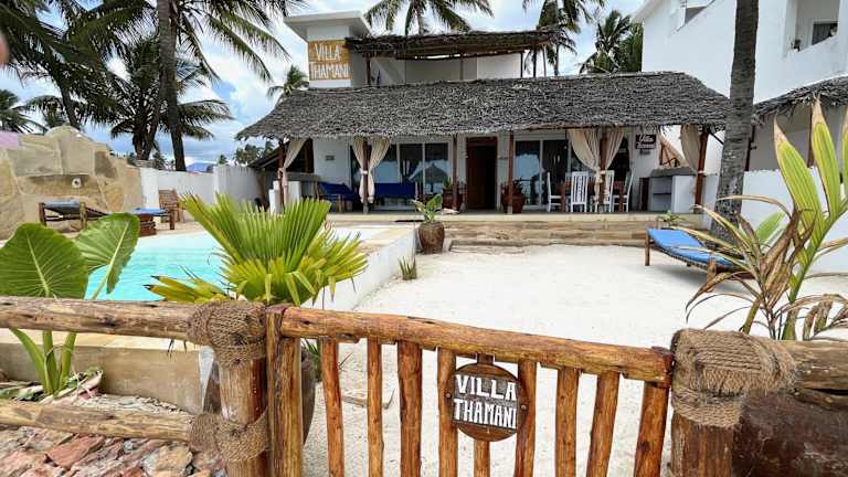 Erleben Sie einen unvergesslichen Aufenthalt im Villa Thamani Zanzibar in Pwani Mchangani. Diese luxuriöse Villa bietet einen atemberaubenden Meerblick vom Balkon, einen privaten Strandbereich und einen Pool mit Aussicht. Die gut ausgestattete Villa verfügt über 4 Schlafzimmer, ein Wohnzimmer, eine voll ausgestattete Küche und 3 Badezimmer. Kostenloses WLAN und Parkplätze stehen zur Verfügung. Genießen Sie ein kontinentales Frühstück und entspannen Sie im Solarium. Das freundliche Personal an der Rezeption steht Ihnen jederzeit zur Verfügung. Bei schönem Wetter können Sie den Grillplatz und den Garten nutzen. Die Villa Thamani Zanzibar bietet eine ideale Lage, um die Umgebung zu erkunden, darunter den Pwani Mchangani Beach und das Kichwele Forest Reserve. Ein kostenpflichtiger Flughafentransfer wird ebenfalls angeboten.