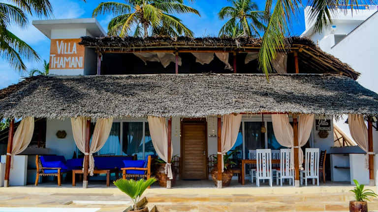 Die Villa Thamani Zanzibar befindet sich in Pwani Mchangani und bietet eine erstklassige Lage direkt am Strand. In der Nähe finden Sie den Pwani Mchangani Beach und verschiedene Attraktionen wie das Peace Memorial Museum und das Kichwele Forest Reserve. Die Umgebung bietet zahlreiche Möglichkeiten zur Erkundung der natürlichen Schönheit von Zanzibar.