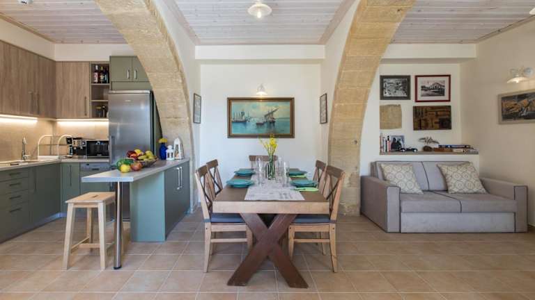 Die Villa befindet sich in der Nähe von Drapanias, ungefähr 1,5 km vom Strand Drapanias entfernt. Die Entfernung zum Hafen Kissamos/Kasteli beträgt etwa 9,1 km, während die antike Stadt Falassarna in 23 km Entfernung liegt. Der Flughafen Chania ist 47 km von der Unterkunft entfernt.