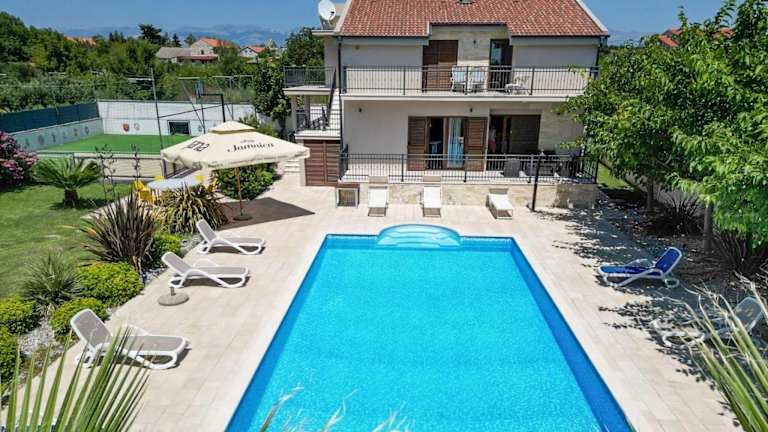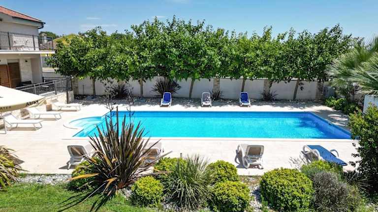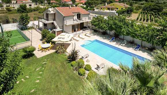 Die Villa Tona in Poličnik ist die ideale Unterkunft für Ihren Aufenthalt in der Region. Mit kostenfreiem WLAN, einem schönen Garten und einer Terrasse können Sie hier Ihren Urlaub in vollen Zügen genießen. Die Villa bietet zudem einen Poolblick und einen Balkon, von dem aus Sie die wunderschöne Umgebung überblicken können. Die Küche ist gut ausgestattet und bietet alles, was Sie für Ihre Selbstversorgung benötigen. In der Nähe befinden sich Sehenswürdigkeiten wie der Herzogspalast und der Volksplatz von Zadar. Der Flughafen Zadar ist nur 12 km entfernt, so dass Sie schnell und bequem anreisen können.