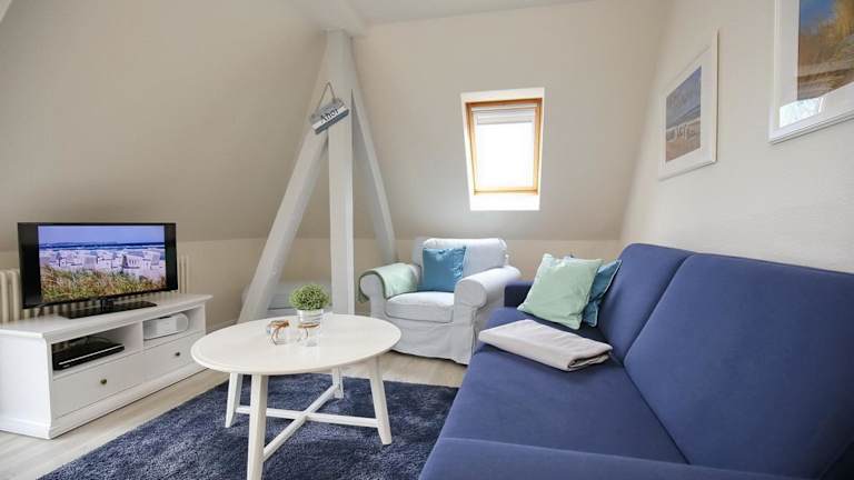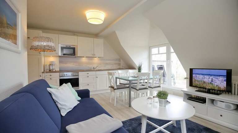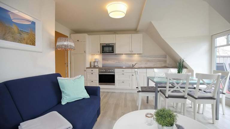 Das Apartment in der Villa Triton Wohnung 06 bietet Platz für bis zu 4 Personen. Es verfügt über 2 Schlafzimmer, ein Wohnzimmer mit Sat-TV und DVD-Player sowie eine voll ausgestattete Küche mit Kühlschrank. Das Apartment ist geschmackvoll eingerichtet und bietet einen Balkon, von dem aus Sie den Meerblick genießen können. Kostenfreies WLAN und kostenfreie Privatparkplätze stehen Ihnen ebenfalls zur Verfügung.
