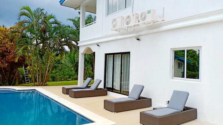 Die Luxury Villa with Pool in Tropical Garden bietet einen eigenen Pool und einen Garten, der mit einem Grill ausgestattet ist. Die Unterkunft verfügt über einen Balkon mit Bergblick und stellt kostenloses WLAN sowie kostenlosen Privatparkplatz zur Verfügung. Das Personal an der Rezeption spricht Deutsch, Englisch und Philippinisch.