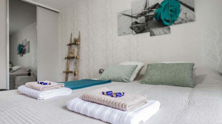 Die Ferienwohnung verfügt über 1 Schlafzimmer, eine gut ausgestattete Küche mit Kühlschrank und Geschirrspüler, einen Flachbild-TV sowie einen Sitzbereich. Ein Badezimmer mit Bidet ist ebenfalls vorhanden. Handtücher und Bettwäsche werden zur Verfügung gestellt.