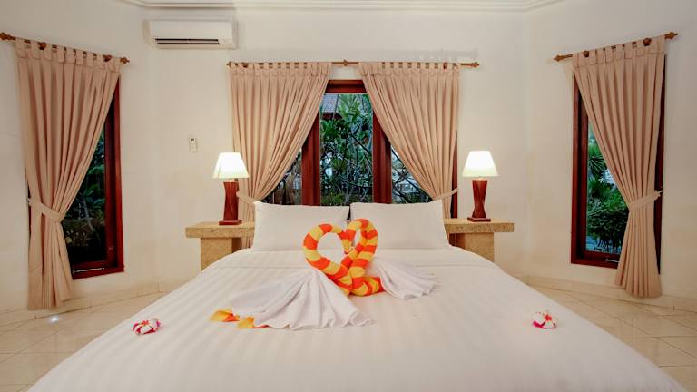 Das Hotel Villa Unggul auf Gili Trawangan bietet seinen Gästen einen entspannten Strandurlaub mit modernen Zimmern, einem Außenpool und kostenfreiem WLAN. Die freundlichen Mitarbeiter stehen Ihnen rund um die Uhr zur Verfügung und helfen Ihnen gerne bei der Organisation von Dorftouren und der Vermietung von Fahrrädern. Genießen Sie den Blick auf die grüne Umgebung von Ihrer eigenen Terrasse oder Ihrem Balkon aus und entspannen Sie am Pool oder am Strand. Die Unterkunft bietet außerdem einen Safe, Wäscheservice und eine 24-Stunden-Rezeption. Der Hafen von Gili Trawangan ist nur einen 15-minütigen Spaziergang entfernt und der internationale Flughafen Lombok ist mit dem Auto in 2 Stunden erreichbar.