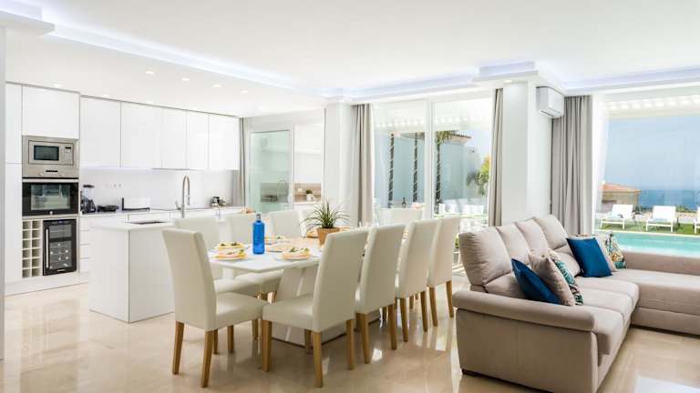 Die Villa bietet insgesamt 5 luxuriöse Schlafzimmer, die Platz für eine große Gruppe von Gästen bieten. Das Wohnzimmer ist geräumig und komfortabel eingerichtet. Die voll ausgestattete Küche verfügt über alle notwendigen Geräte, einschließlich Kühlschrank und Kaffeemaschine. Die 6 Badezimmer sind modern und elegant gestaltet und verfügen über ein Bidet und eine Dusche. Zur Unterhaltung stehen ein Flachbild-Sat-TV und eine Spielekonsole zur Verfügung. Kostenloses WLAN ist in der gesamten Villa verfügbar.