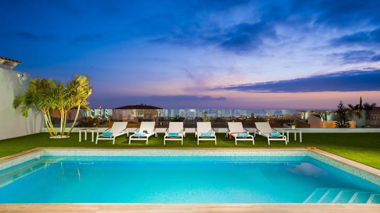 Die VILLA VALENTINA OCEAN VIEW HEATED Pool in Adeje ist eine luxuriöse Villa mit atemberaubendem Stadt- und Meerblick. Hier können Sie das ganze Jahr über einen beheizten Außenpool, ein Fitnesscenter und einen Whirlpool genießen. Die Villa bietet 5 Schlafzimmer, ein geräumiges Wohnzimmer, eine voll ausgestattete Küche und 6 Badezimmer. WLAN und Privatparkplätze stehen kostenfrei zur Verfügung. Entspannen Sie auf der Terrasse mit Blick auf den Garten und nutzen Sie die Grillmöglichkeiten. Die Villa liegt in der Nähe von Stränden und der nächste Flughafen ist nur 21 km entfernt.