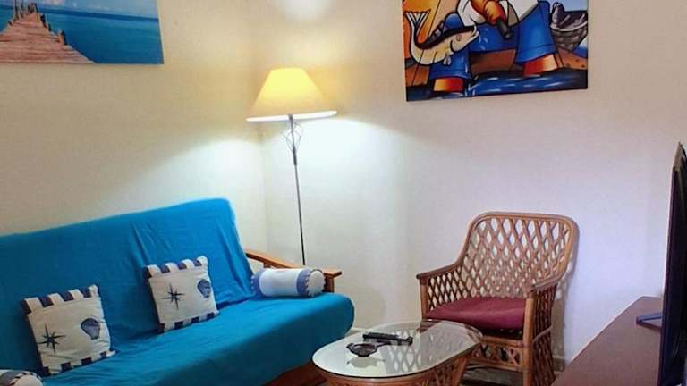 Die Ferienwohnung verfügt über 1 Schlafzimmer, ein Wohnzimmer mit einem Flachbild-TV, eine gut ausgestattete Küche mit Kühlschrank und Mikrowelle sowie ein Badezimmer mit Bidet. Eine Terrasse mit Meerblick ist ebenfalls vorhanden.