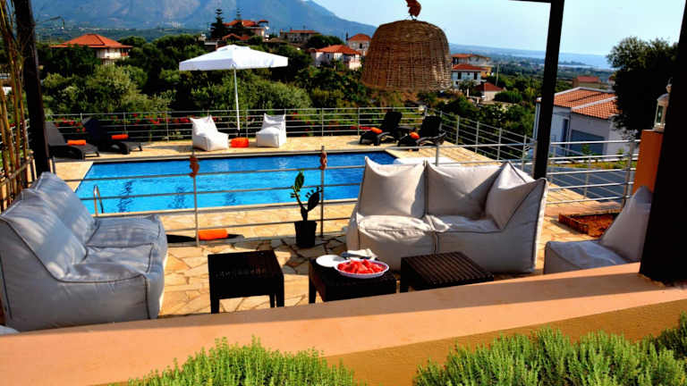 Die Villa Verde ist eine charmante Unterkunft, die nur 28 km vom malerischen See Kaiafa entfernt liegt. Mit einem saisonalen Außenpool und einem gepflegten Garten bietet die Villa den perfekten Ort für einen erholsamen Aufenthalt. Die klimatisierten Unterkünfte verfügen über einen Balkon und kostenfreies WLAN. Genießen Sie den atemberaubenden Meerblick von der Terrasse und entspannen Sie im gemütlichen Sitzbereich. Die voll ausgestattete Küche bietet alles, was Sie für die Zubereitung Ihrer Mahlzeiten benötigen. Das private Badezimmer ist mit einer Dusche und kostenlosen Pflegeprodukten ausgestattet. Für zusätzlichen Komfort stehen ein Kochfeld, ein Toaster, eine Kaffeemaschine und ein Wasserkocher zur Verfügung. Der internationale Flughafen Kalamata befindet sich in einer Entfernung von 60 km und kann gegen eine zusätzliche Gebühr mit dem Flughafentransfer erreicht werden.