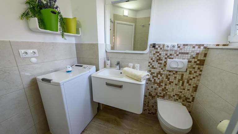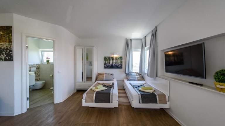 Die Zimmer der Villa Vesna sind mit einem Sitzbereich, einem Satelliten-Flachbild-TV sowie einer voll ausgestatteten Küche ausgestattet, die über einen Kühlschrank, einen Ofen, eine Herdplatte, einen Toaster, eine Kaffeemaschine und einen Wasserkocher verfügt. Ein eigenes Badezimmer mit Dusche und Haartrockner ist ebenfalls vorhanden.