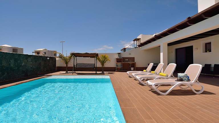 Die Villa Victoria in Playa Blanca ist der perfekte Ort für einen entspannten Urlaub. Genießen Sie den atemberaubenden Blick auf die Berge von Ihrem eigenen Balkon aus und erfrischen Sie sich im Außenpool. Die Villa bietet Ihnen auch Grillmöglichkeiten, um gemütliche Abende im Freien zu verbringen. Der Strand Montana Roja ist nur wenige Gehminuten entfernt und der Strand La Campana ist in 19 Minuten zu Fuß erreichbar. Kostenlose Privatparkplätze stehen Ihnen zur Verfügung. Die Umgebung bietet viele Aktivitäten wie Wandern und Tischtennis. Die Villa verfügt über 3 Schlafzimmer, 3 Badezimmer, einen Flachbild-Sat-TV und eine voll ausgestattete Küche. Entspannen Sie auf der Terrasse und genießen Sie den Meerblick. Die Villa ist klimatisiert und bietet auch einen Sitzbereich und eine Waschmaschine. Fahrradverleih und Autovermietung sind ebenfalls möglich. Der Strand Flamingo ist 3 km entfernt und der Parque Nacional de Timanfaya ist 23 km entfernt. Der nächstgelegene Flughafen ist der Flughafen Lanzarote, der 33 km von der Unterkunft entfernt ist.
