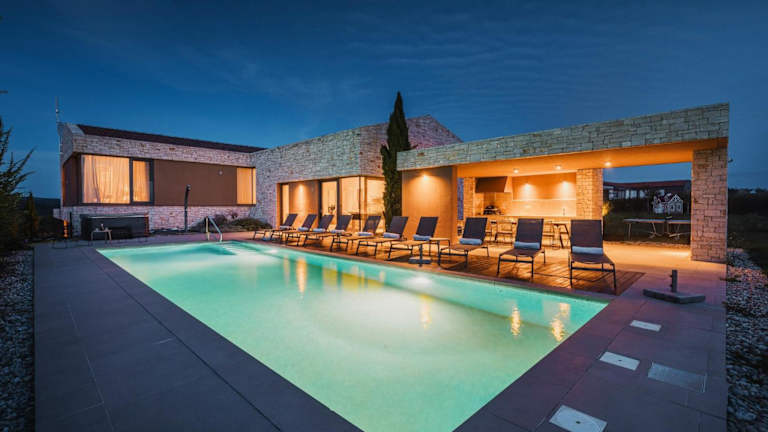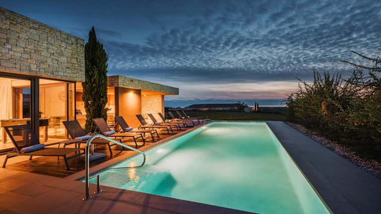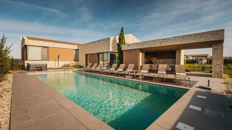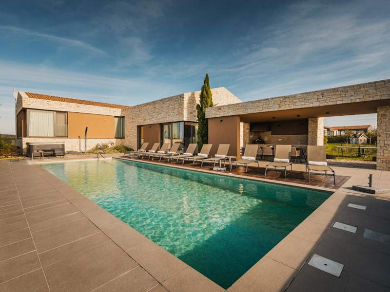 Die Unterkunft Villa Vigneto near Novigrad ist für bis zu 15 Personen ausgelegt und bietet Meerblick sowie Übernachtungsmöglichkeiten mit einer großzügigen Terrasse und einer Veranda/Patio. Die Villa zeichnet sich durch ihre klimatisierte Ausstattung aus und verfügt über einen eigenen Außenpool, einen Garten sowie kostenfreie Parkmöglichkeiten.