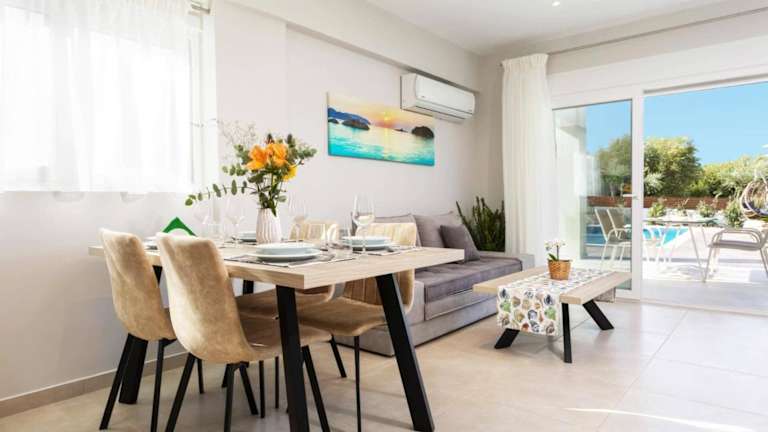 Entspannen Sie sich in Ihrem eigenen privaten Pool und genießen Sie die Sonne und die Ruhe der Umgebung. Nutzen Sie das kostenfreie WLAN, um mit Ihren Lieben in Kontakt zu bleiben oder um sich über die Sehenswürdigkeiten in der Umgebung zu informieren. Erkunden Sie die Kirche Agios Dionysios und den Hafen von Zakynthos, die beide nur eine kurze Autofahrt entfernt sind.
