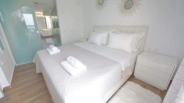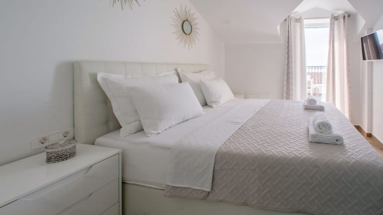 Das klimatisierte Apartment verfügt über 2 Schlafzimmer, ein Wohnzimmer und eine voll ausgestattete Küche mit Kühlschrank und Kaffeemaschine. Das Apartment bietet Platz für eine Familie oder eine Gruppe von Freunden und bietet alles, was Sie für einen komfortablen Aufenthalt benötigen. Handtücher und Bettwäsche werden gestellt, so dass Sie sich um nichts kümmern müssen. Das Bad ist mit einem Bidet und einer Dusche ausgestattet.