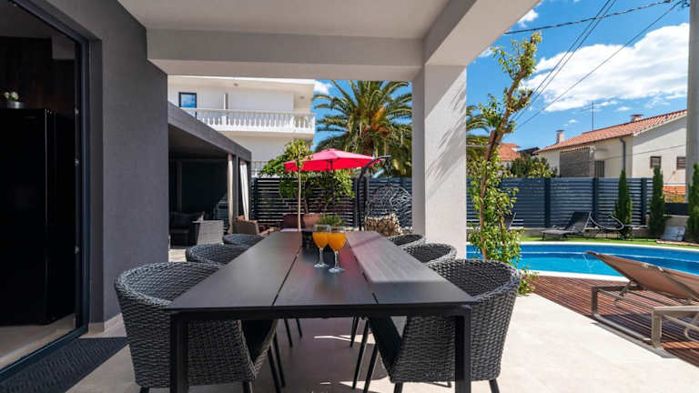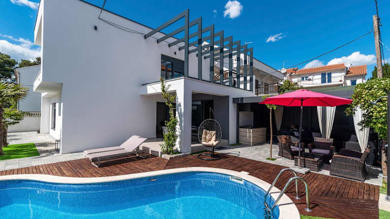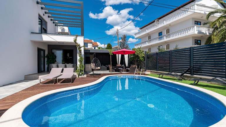 Die Villa Vodice in Vodice bietet Platz für 8 Personen und ist eine gut ausgestattete Unterkunft mit einem Balkon sowie kostenlosem WLAN. Zur Ausstattung gehören ein eigener Pool, ein Garten und ein kostenloser Privatparkplatz. Die gesamte Unterkunft ist klimatisiert und ermöglicht einen komfortablen Aufenthalt.