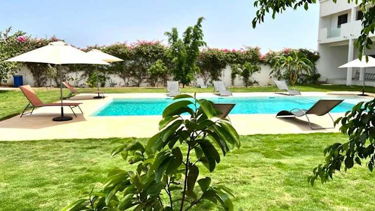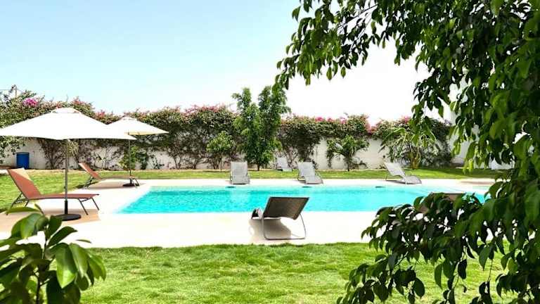 Die Villa W Téranga Saly Joseph in Ndiorhorh bietet einen komfortablen Aufenthalt in einer wunderschönen Umgebung. Mit einem Außenpool, einer Terrasse und einer Bar können Sie Ihre Zeit im Freien genießen. Die Villa selbst verfügt über geräumige Zimmer, eine voll ausgestattete Küche und mehrere Badezimmer. Das freundliche Personal steht Ihnen rund um die Uhr zur Verfügung und spricht Englisch und Französisch. Die Villa bietet auch Fahrradverleih und Autovermietung an, um die Umgebung zu erkunden. In der Nähe finden Sie einen Golfplatz und das Naturschutzgebiet Popenguine. Der internationale Flughafen Blaise Diagne ist nur 27 km entfernt.