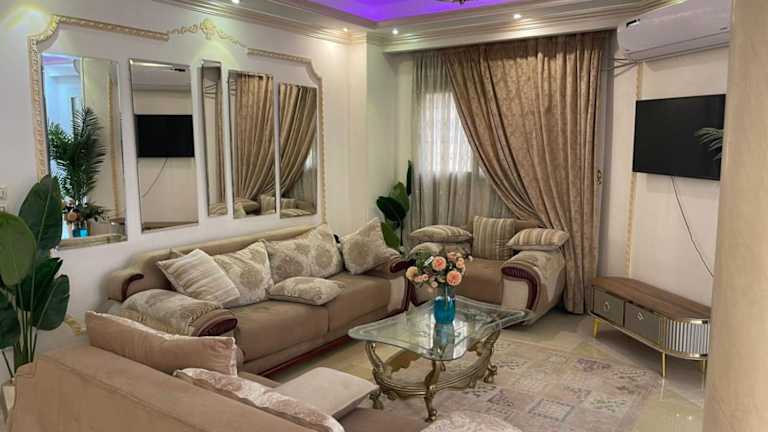 Die Trio Villa with private pool in compound near Mall of Egypt liegt etwa 19 km von den berühmten Pyramiden von Gizeh entfernt und bietet einen atemberaubenden Blick auf die umliegenden Berge. Die Villa befindet sich in einem ruhigen Wohngebiet und ist ideal für Reisende, die eine entspannte und private Atmosphäre suchen. In der Nähe gibt es eine Vielzahl von Freizeitmöglichkeiten, darunter das Einkaufszentrum Mall of Egypt und verschiedene Restaurants und Cafés. Die Große Sphinx und der Tahrir-Platz sind ebenfalls leicht zu erreichen.