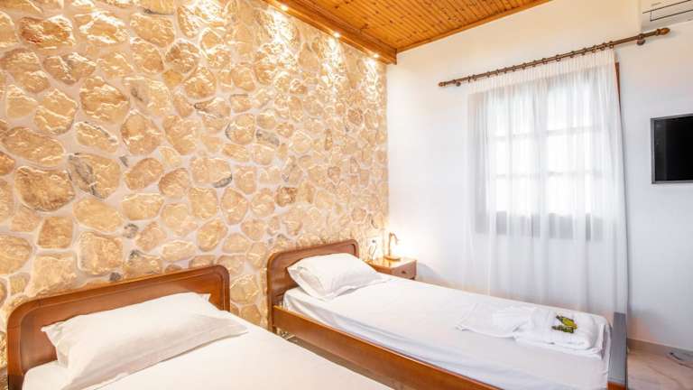 Die Unterkunft umfasst zwei Schlafzimmer, ein Badezimmer, sowie eine voll ausgestattete Küche. Zu den Annehmlichkeiten gehören Bettwäsche, Handtücher, ein Flachbild-TV mit Satellitenkanälen und eine Veranda oder ein Patio mit Meerblick. Es wird darauf hingewiesen, dass Haustiere nicht gestattet sind.