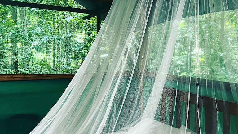 Die Zimmer im Daintree Crocodylus Resort sind im Safarizelt-Stil gestaltet und bieten ein einzigartiges und authentisches Erlebnis im Regenwald. Die Zimmer bestehen aus einer Kombination aus Holz und Leinwand und verfügen über hohe Decken, Ventilatoren und Moskitonetze. Einige Zimmer bieten ein eigenes Bad, während andere eine Gemeinschaftsveranda mit Blick auf den Regenwald haben. Die minimalistische Einrichtung der Zimmer ermöglicht es Ihnen, sich auf die Schönheit der Natur zu konzentrieren und sich vom modernen Leben abzuschalten.