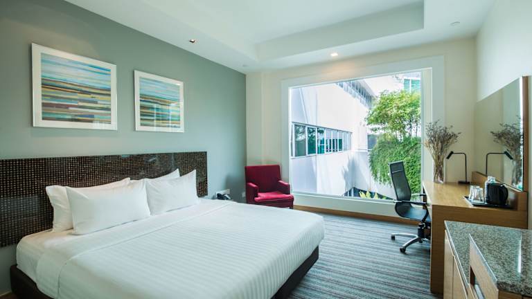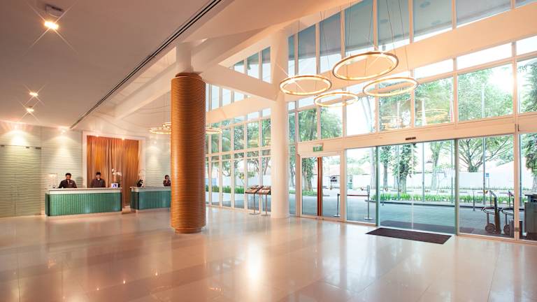 Das Village Hotel Changi liegt in der Ortschaft Changi, umgeben von kleinen Geschäften und Restaurants, die frische Meeresfrüchte und lokale Köstlichkeiten anbieten. Der Changi Boardwalk, eine 1 km lange Strandpromenade, ist nur 5 Gehminuten entfernt und führt vom Changi Strand Club zum Changi Segel Club. In der Nähe befinden sich auch die berühmten Kelong Pfahlbauten. Das Hotel ist etwa 12-15 Autominuten vom Flughafen Changi, der Tanah Merry Fährstation und der Singapore Expo entfernt. Die Changi Fährstation, von der aus Sie zur benachbarten Insel Pulau Ubin fahren können, ist ebenfalls in der Nähe.
