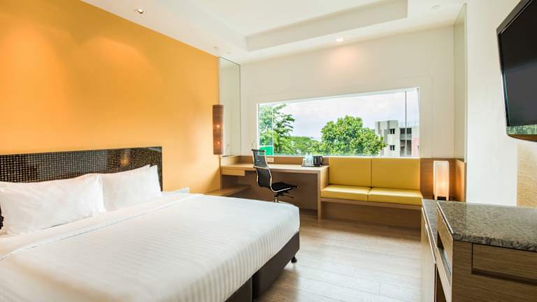 Das Village Hotel Changi verfügt über 380 Zimmer, darunter 5 Junior-Suiten und 11 Suiten, die sich auf 8 Etagen verteilen. Die Zimmer sind komfortabel und bieten einen angenehmen Aufenthalt mit Annehmlichkeiten wie einem Flachbild-Kabel-TV, einem Safe und einem Schreibtisch. Die eigenen Badezimmer sind mit einer Badewanne mit Regendusche ausgestattet und kostenlose Pflegeprodukte stehen zur Verfügung.