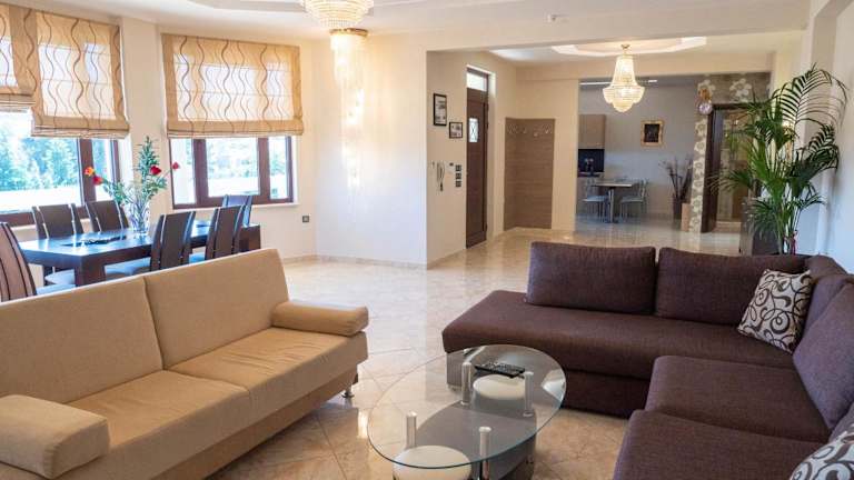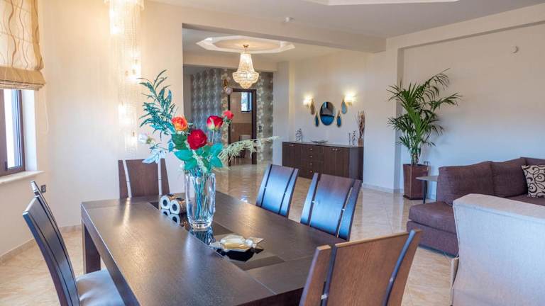 Die Villa bietet geräumige und komfortable Zimmer mit einer voll ausgestatteten Küche und einem Badezimmer. Jedes Zimmer verfügt über einen Balkon oder eine Terrasse mit Blick auf den Garten. Zur Ausstattung gehören auch eine Whirlpool-Badewanne, eine Dusche mit Hydromassagedüsen, eine Sauna und ein Grill. Handtücher und Bettwäsche werden gestellt, um Ihren Aufenthalt so angenehm wie möglich zu gestalten.