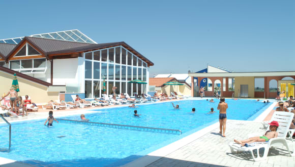Entspannen Sie am Außenpool oder nehmen Sie ein erfrischendes Bad im Kinderpool. Die Sonnenterrasse ist der perfekte Ort, um die Sonne zu genießen und sich zu entspannen.