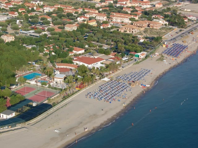 Das Villaggio Le Palme heißt Sie direkt am Strand willkommen und bietet Ihnen die perfekte Kombination aus Entspannung und Aktivitäten. Genießen Sie die beiden Außenpools, Wassersportmöglichkeiten und Tennisplätze. Die klimatisierten Bungalows mit möblierter Terrasse bieten Ihnen den idealen Rückzugsort. Das Resort verfügt über einen eigenen Strand mit Liegestühlen und Sonnenschirmen sowie ein abwechslungsreiches Unterhaltungsprogramm. Im Restaurant werden Ihnen traditionelle Gerichte aus Kampanien serviert und am Morgen erwartet Sie ein reichhaltiges Frühstücksbuffet. Das Resort bietet zudem glutenfreie Speisen auf Anfrage an. Die einfach eingerichteten Bungalows sind in hellblauen und weißen Tönen gehalten und verfügen über einen TV, eine Minibar und ein voll ausgestattetes Badezimmer. Bettwäsche und Handtücher werden gestellt und eine münzbetriebene Waschküche ist ebenfalls vorhanden. Das Resort bietet einen kostenlosen Shuttleservice zum Bahnhof Ascea, der nur 2 km entfernt liegt. Die Autobahn A3, die von Neapel nach Reggio Calabria führt, erreichen Sie nach einer 80-minütigen Fahrt.