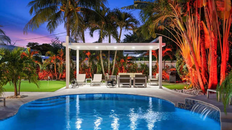 VillaLee-Jungle Palm Island white marble pool Area verfügt über einen eigenen Pool und kostenloses WLAN. Diese Ferienunterkunft ist klimatisiert und bietet eine Veranda bzw. einen Patio sowie einen Außenpool.