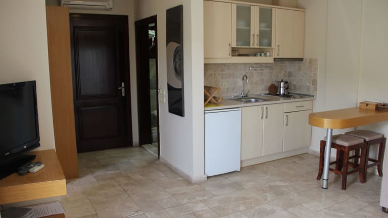Die Apartments verfügen über Klimaanlage, ein Schlafzimmer, ein Wohnzimmer und eine voll ausgestattete Küche mit Kühlschrank und Wasserkocher. Zudem ist ein Badezimmer mit Dusche und Haartrockner vorhanden. Eine Sitzecke mit einem Flachbild-TV mit Satellitenkanälen sorgt zusätzlich für Komfort.