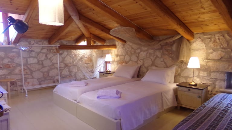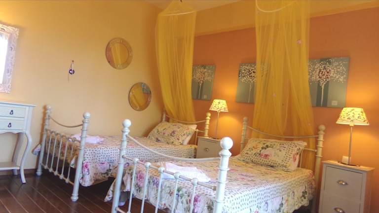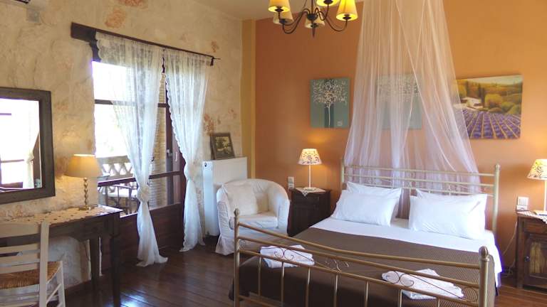 Die Villen und Maisonettes im Alegria Villas Complex sind elegant eingerichtet und bieten einen komfortablen Aufenthalt. Jede Wohneinheit verfügt über einen Kamin und kostenfreies WLAN. Die Ferienhäuser sind voll klimatisiert und bieten romantische Details wie Spitzengardinen und antike Möbel. Die Villen verfügen über einen eigenen Pool, während die Maisonettes Zugang zu einem Gemeinschaftspool haben. Die Schlafzimmer sind in hellen Farben gehalten und verfügen über eiserne Betten mit Moskitonetzen. Jede Villa und Maisonette verfügt über eine voll ausgestattete Küche mit Kochgelegenheit, Mikrowelle und Essbereich. Das geräumige Wohnzimmer ist mit Sat-TV und DVDs ausgestattet, um Ihnen Unterhaltung zu bieten. Jede Wohneinheit verfügt auch über ein Badezimmer und eine möblierte Veranda oder einen Balkon mit Blick auf das Meer und die Landschaft von Zakynthos.