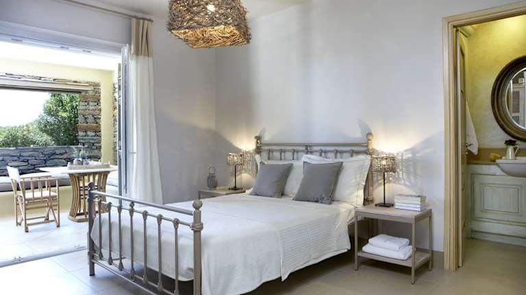 Die 8 rustikalen Villen des Diles & Rinies Hotels bieten eine gemütliche und komfortable Unterkunft. Jede Villa erstreckt sich über 2 Etagen und verfügt über Holzbalkendecken und Steindetails, die für ein rustikales Ambiente sorgen. Die Villen sind mit einem gemütlichen Wohnbereich mit Kamin, einer offenen Küche mit Herd, Kühlschrank und Geschirrspüler sowie einem eigenen Bad mit Dusche oder Badewanne ausgestattet. Eine Waschmaschine ist ebenfalls vorhanden. Die Villen bieten zudem möblierte Balkone oder Veranden mit Panoramablick auf die Ägäis.