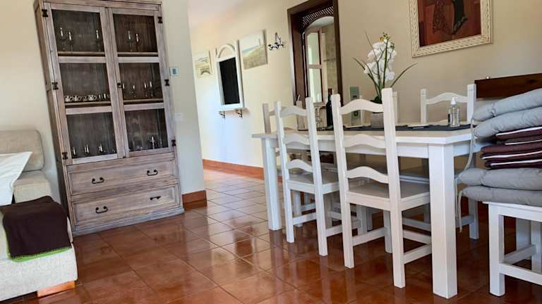 Das Villas La Barrosa bietet insgesamt acht klimatisierte Villen, die in einem charmanten Garten um einen gemeinsamen Außenpool angeordnet sind. Jede Villa verfügt über eine möblierte Terrasse mit Gartenblick, auf der Sie entspannen und die Sonne genießen können. Grillmöglichkeiten stehen ebenfalls zur Verfügung, so dass Sie im Freien köstliche Mahlzeiten zubereiten können. Im Inneren der Villen finden Sie ein gemütliches Wohnzimmer mit einem Kamin, einem bequemen Sofa und einem Flachbild-TV. Es gibt auch zwei Badezimmer und eine separate Toilette für Ihren Komfort. Die gut ausgestattete Küche enthält einen Geschirrspüler und eine Waschmaschine, so dass Sie auch während Ihres Aufenthalts bequem kochen und Ihre Wäsche waschen können.
