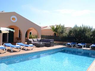 Die Villas Las Golondrinas auf Menorca bieten Ihnen eine ideale Unterkunft, nur 800 m vom Strand Son Xoriguer entfernt. Jede Villa verfügt über einen eigenen Außenpool und eine Terrasse mit Grillplatz. Genießen Sie den Komfort von 3 Schlafzimmern, einem Wohnzimmer, einer voll ausgestatteten Küche und einer Waschküche. Geschäfte, Bars und Restaurants sind nur wenige Gehminuten entfernt und kostenlose Privatparkplätze stehen zur Verfügung. Entdecken Sie die Schönheit von Menorca und besuchen Sie die nahe gelegene Stadt Ciutadella oder den See Lago de Cala en Bosch. Der Flughafen Mahon ist ebenfalls leicht zu erreichen.
