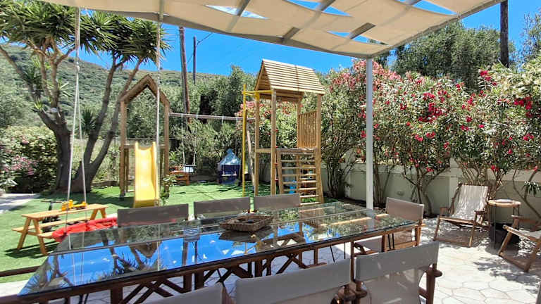 Die Villas Margaris bieten Ihnen eine wunderbare Unterkunft mit Blick auf die Berge und allen Annehmlichkeiten, die Sie für einen gelungenen Urlaub benötigen. Genießen Sie die geräumigen Villen mit Terrasse und Balkon, die voll ausgestattete Küche und das komfortable Wohnzimmer. Der nahegelegene Strand und die Kirche Agios Dionysios sind nur eine kurze Fahrt entfernt, und das Personal steht Ihnen gerne mit Informationen und Unterstützung zur Verfügung. Buchen Sie jetzt und erleben Sie einen unvergesslichen Aufenthalt auf Zakynthos.