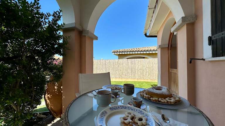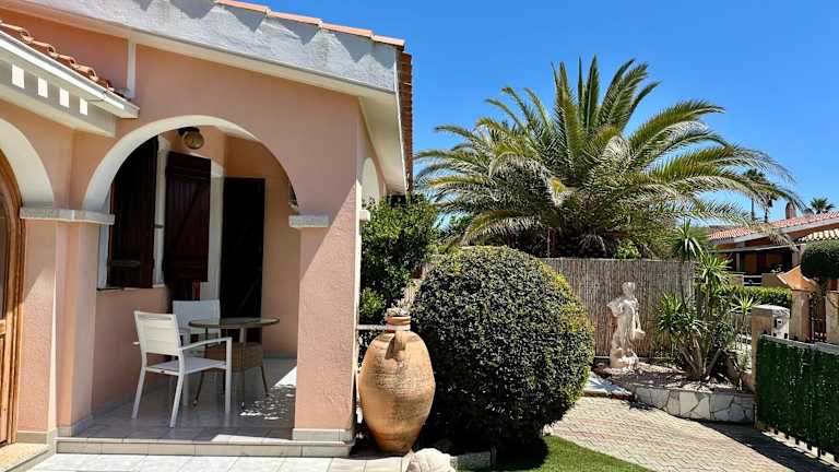 Villetta a schiera - Villasimius bietet Übernachtungsmöglichkeiten direkt am Strand. Die Unterkunft verfügt über einen Garten und kostenloses WLAN. Die Villa hat eine Veranda bzw. einen Patio und bietet Gartenblick.
