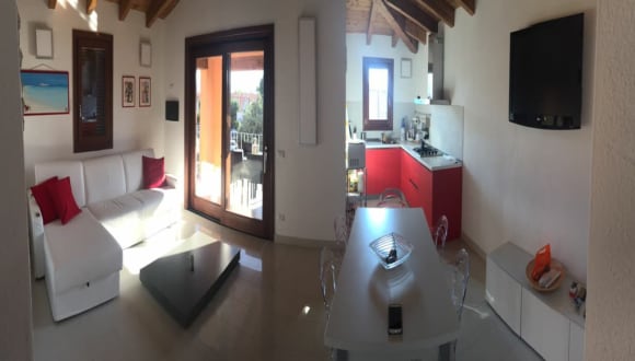 Modernes Appartement in San Teodoro – Nur 400 Meter zum Traumstrand “ La Cinta” Das moderne Appartement liegt im Herzen des belebten Urlaubsortes San Teodoro. Es ist modern ausgestattet und liegt nur 400 Meter weit entfernt vom einmalig schönen Strand “ La Cinta” Das Appartement ist 74 m² groß und bietet Schlafgelegenheiten für bis zu 8 Personen. Ein Schlafzimmer mit Doppelbett und ein Schlafzimmer mit 2 Doppelbetten. Zusätzlich ein Schlafsofa für 2 Personen. Die Wohnung ist neu gebaut und ist Teil einer Vier-Familien-Villa. Es stehen zwei private Parkplatze zur Verfügung. Zusätzlich gibt es einen gemeinsamen Innenhof. Desweiteren stehen 4 Fahrräder zur Verfügung. Im Inneren finden Sie Designer-Möbeln und einen LCD-Bildschirm-TV. Wi-Fi vorhanden. Zentrale Klimaanlage. Der Garten hat eine praktische Aussendusche, eine Veranda mit Tisch und Stühlen zum Essen. San Teodoro ist eine touristische Stadt mit einem mediterranen Geist, der entdeckt werden will: es ist ein Ort der Sonnenschein, Meer, Sandstrände von Quarz viel Charme und Bootsfahrten für Jung und Alt. Bettwäsche und Handtücher sind für alle Gäste enthalten. *Anzahlung: 30% Reservierung *Endreinigung : 100 Euro für die Grundreinigung nach Auszug