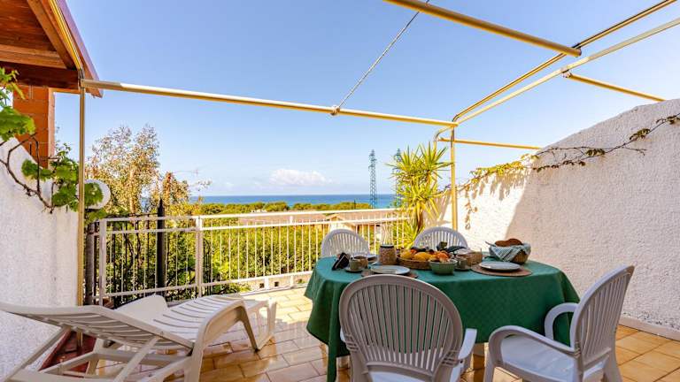 Die Villetta bietet vielfältige Annehmlichkeiten wie kostenloses WLAN, Klimaanlage, einen Garten mit Grillmöglichkeiten sowie eine Terrasse mit Blick auf das Meer. Die Unterkunft wird von einem privaten Gastgeber geführt.