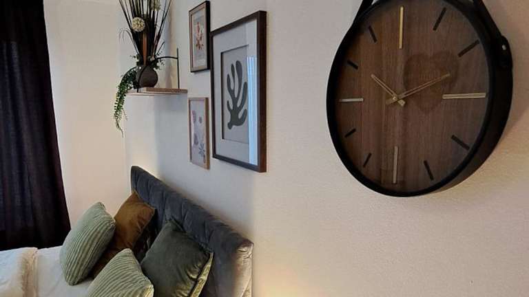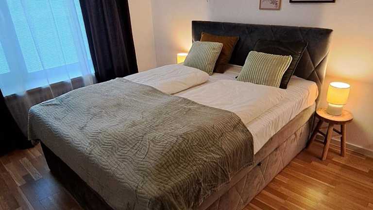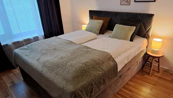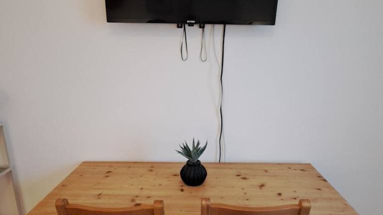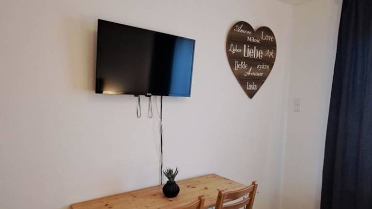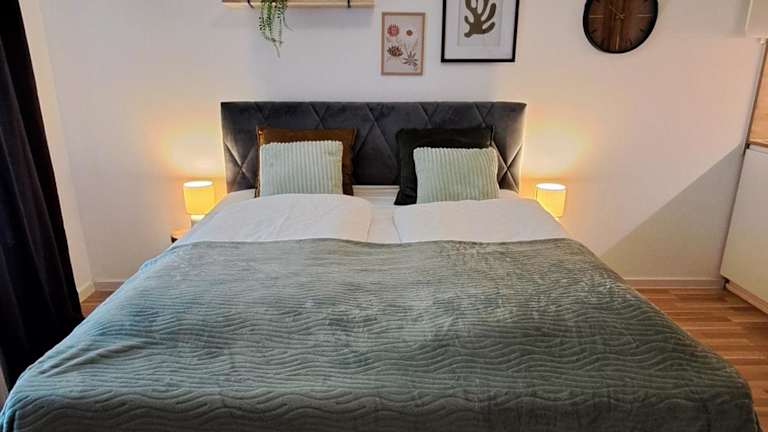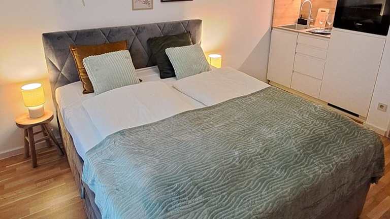 Die Ferienwohnung umfasst 1 Schlafzimmer sowie eine Küchenzeile, die mit einem Kühlschrank und einem Ofen ausgestattet ist. Es gibt ein Badezimmer mit Dusche, Haartrockner und Waschmaschine. Handtücher und Bettwäsche werden bereitgestellt.