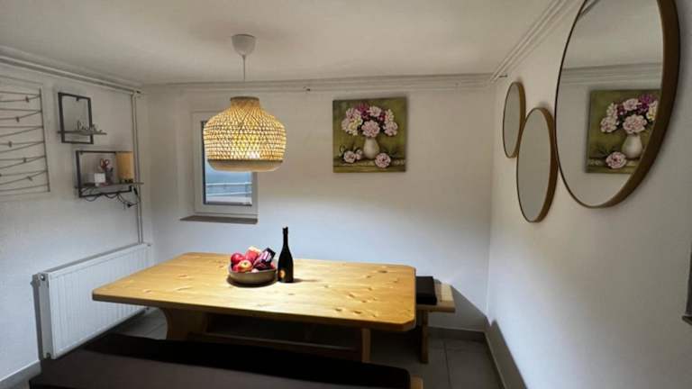 Das Ferienhaus hat ein Schlafzimmer, ein Wohnzimmer und eine voll ausgestattete Küche mit Kühlschrank und Wasserkocher. Ein Badezimmer mit Dusche und Whirlpool ist ebenfalls vorhanden. Handtücher und Bettwäsche werden bereitgestellt.