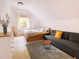 Die Unterkunft bietet eine Sonnenterrasse, auf der Sie sich entspannen und die schöne Umgebung genießen können. In der Umgebung gibt es zahlreiche Möglichkeiten für Outdoor-Aktivitäten wie Wandern und Radfahren. Erkunden Sie die Sehenswürdigkeiten in der Nähe oder besuchen Sie die Amethyst Welt Maissau und die Burg Bítov.