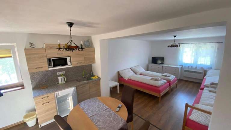 Im Vinný sklep u Mňa können Sie Ihre Mahlzeiten nach Belieben zubereiten und im gemütlichen Ambiente Ihrer Unterkunft genießen. Die voll ausgestattete Küche bietet Ihnen alle Annehmlichkeiten, die Sie benötigen, um Ihre Lieblingsspeisen zuzubereiten. Alternativ können Sie auch die Grillmöglichkeiten nutzen und ein leckeres Barbecue im Freien veranstalten.