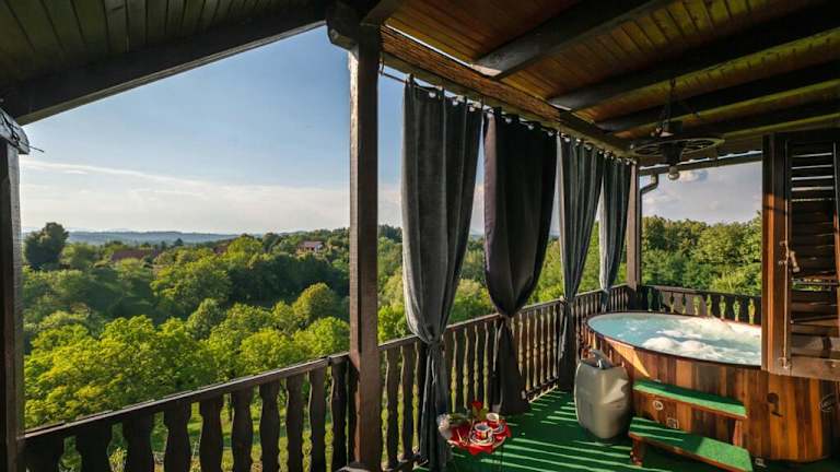 Im Vinogradarov San können Sie sich im Whirlpool entspannen und den Garten und den Grillplatz nutzen. Es gibt auch einen Kinderspielplatz, auf dem die kleinen Gäste spielen und sich austoben können. In der Umgebung gibt es viele Möglichkeiten zum Wandern und Erkunden der Natur. Der Zoo Zagreb, die Festung Medvedgrad und der Maksimir-Park bieten ebenfalls Freizeitmöglichkeiten in der Nähe.
