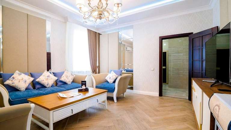 Das Vintage Boutique Hotel befindet sich in Astana und liegt 5,1 km vom Bajterek-Turm und 9,3 km von der Expo 2017 Astana entfernt. Weitere Sehenswürdigkeiten in der Nähe sind das Kazakhstan Sports Palace (1,6 km), das Otan Korgaushylar Monument (2,2 km) und die Hazrat Sultan Mosque (2,8 km). Der Palace of Independence ist 3,7 km entfernt, während der Palace of Peace and Reconciliation 4 km weit ist. Der nächstgelegene Flughafen, der Internationale Flughafen Nursultan Nazarbayev, ist 18 km entfernt.