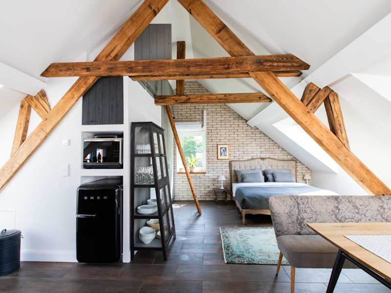Die Apartments im Vintage meets Moderne sind geschmackvoll eingerichtet und bieten einen einzigartigen Mix aus Vintage-Charme und modernem Komfort. Jede Wohneinheit verfügt über eine voll ausgestattete Küche mit einem Esstisch, um Mahlzeiten bequem zuzubereiten und einzunehmen. Ein Flachbild-Sat-TV sorgt für Unterhaltung und das eigene Badezimmer ist mit einer Dusche, kostenfreien Pflegeprodukten und einem Haartrockner ausgestattet. Zur weiteren Ausstattung gehören ein Kühlschrank, ein Geschirrspüler, ein Backofen, eine Kaffeemaschine und ein Wasserkocher.