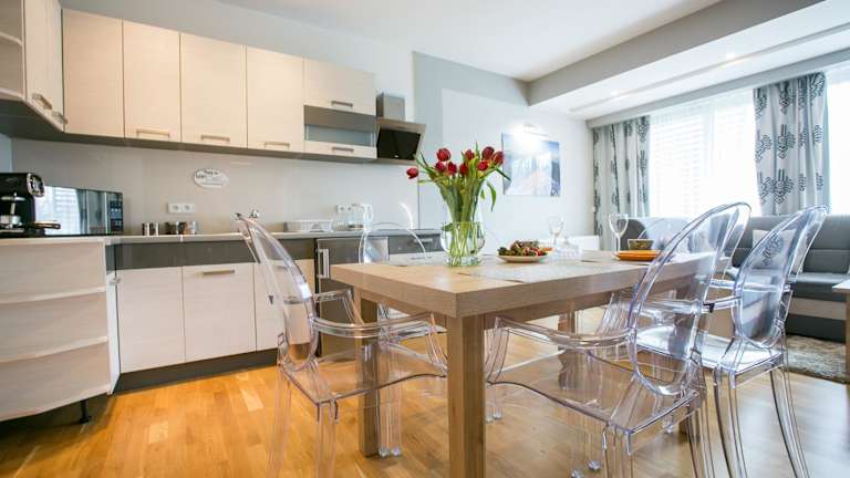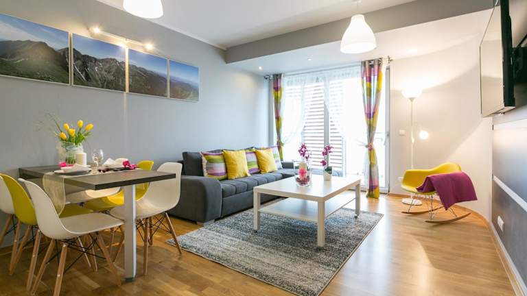 Die Apartments im VIP Apartamenty Stara Polana sind modern und stilvoll eingerichtet. Jedes Apartment verfügt über ein gemütliches Wohnzimmer mit einem komfortablen Sitzbereich und einem LCD-TV. Eine voll ausgestattete Küchenzeile mit einer Basisausstattung an Kochutensilien ist ebenfalls vorhanden. Kostenloses WLAN steht den Gästen zur Verfügung.